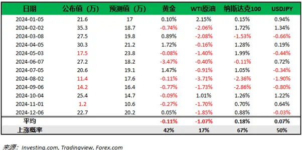 下图为过去12次非农数据以及当日市场表现,仅供参考。
