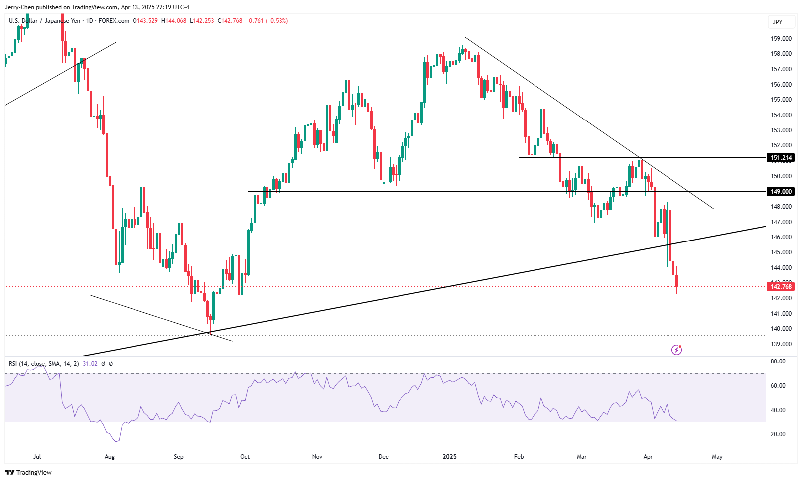 由于日本央行正在同时面临由通胀导致的加息压力以及关税风波引发的升值压力,因此在没有形成有效的反转形态之前,美/日阻力最小的方向仍是下行。若跌破142后或加速下探前低140一线。反弹方向上144是首要阻力。